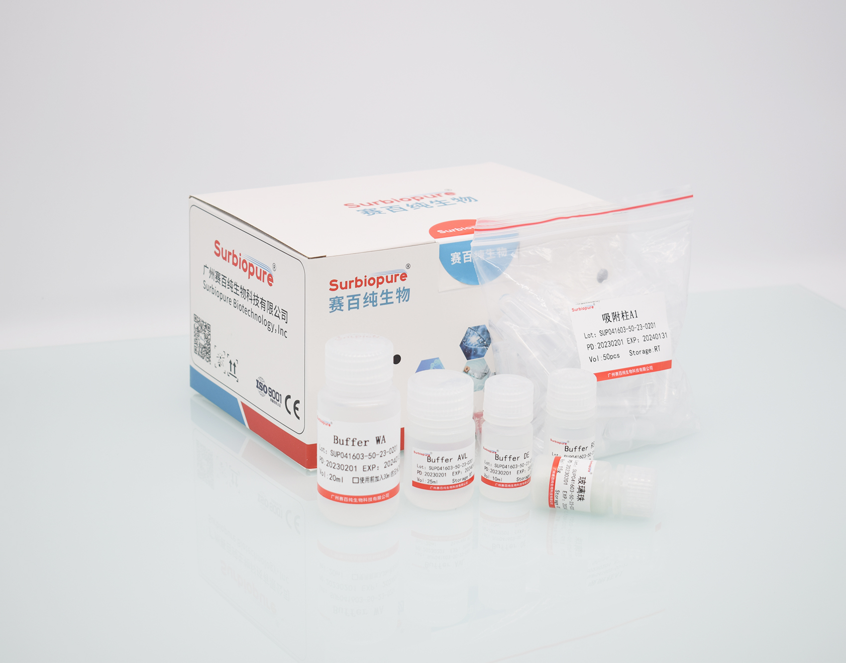【產(chǎn)品名稱】細(xì)菌基因組 DNA 純化試劑盒(離心柱法)。 英文名稱:Surbiopure bacteria DNA Kit。 【包裝規(guī)格】50T/盒 100 T/盒 【適用范圍】各類革蘭氏陰性菌和陽性菌等。 【原 理】細(xì)菌樣本經(jīng)過消化液處理后與裂解結(jié)合緩沖液混合,使得細(xì)胞破碎并將核酸釋放。離心柱中采用的硅基質(zhì)材料為本公司特有新型材料,在裂解緩沖液中,能夠高效、專一吸附DNA,可最大限度去除雜質(zhì)蛋白及細(xì)胞中其他有機(jī)化合物。提取的基因組DNA片段大,純度高,質(zhì)量穩(wěn)定,可直接用于DNA下游實驗。041603