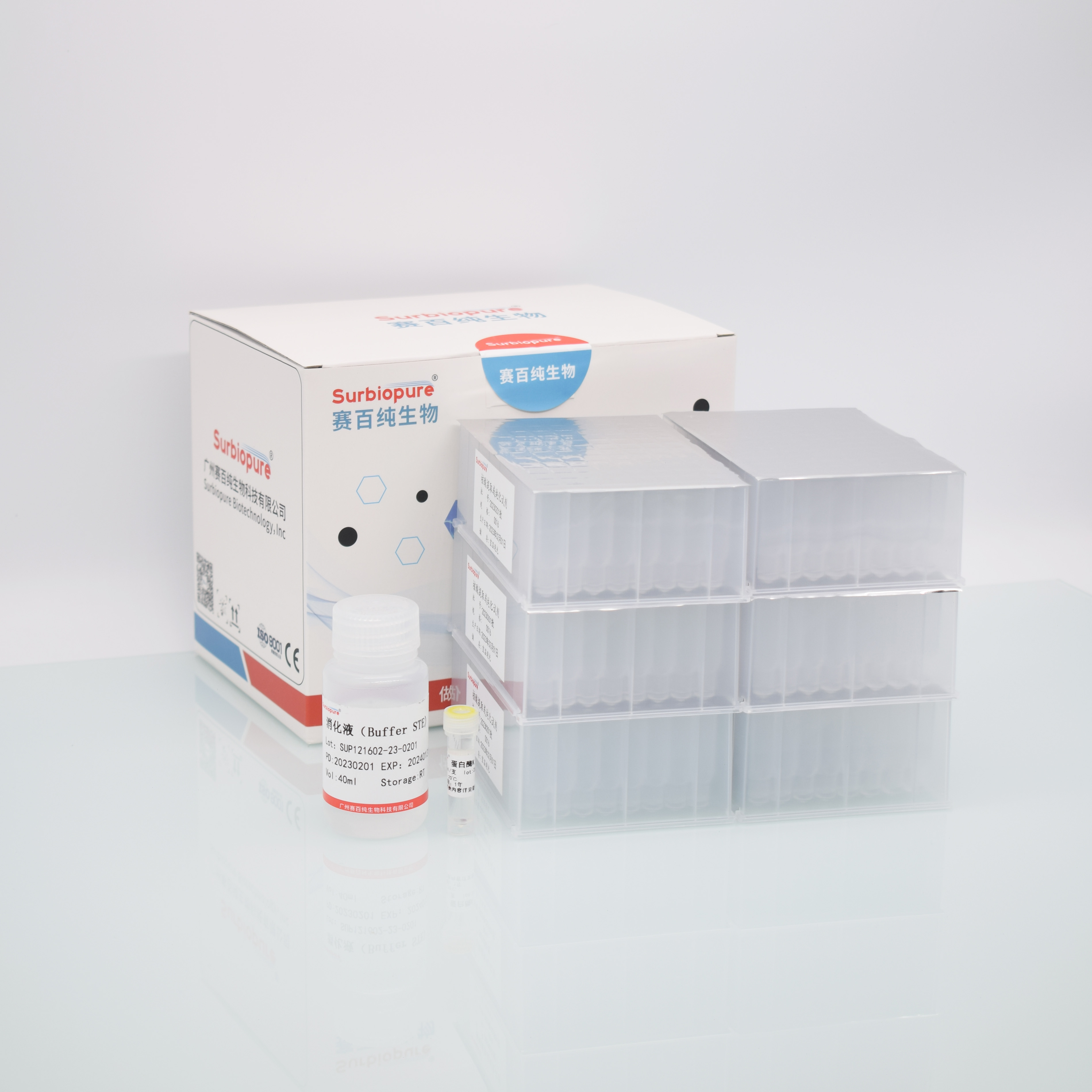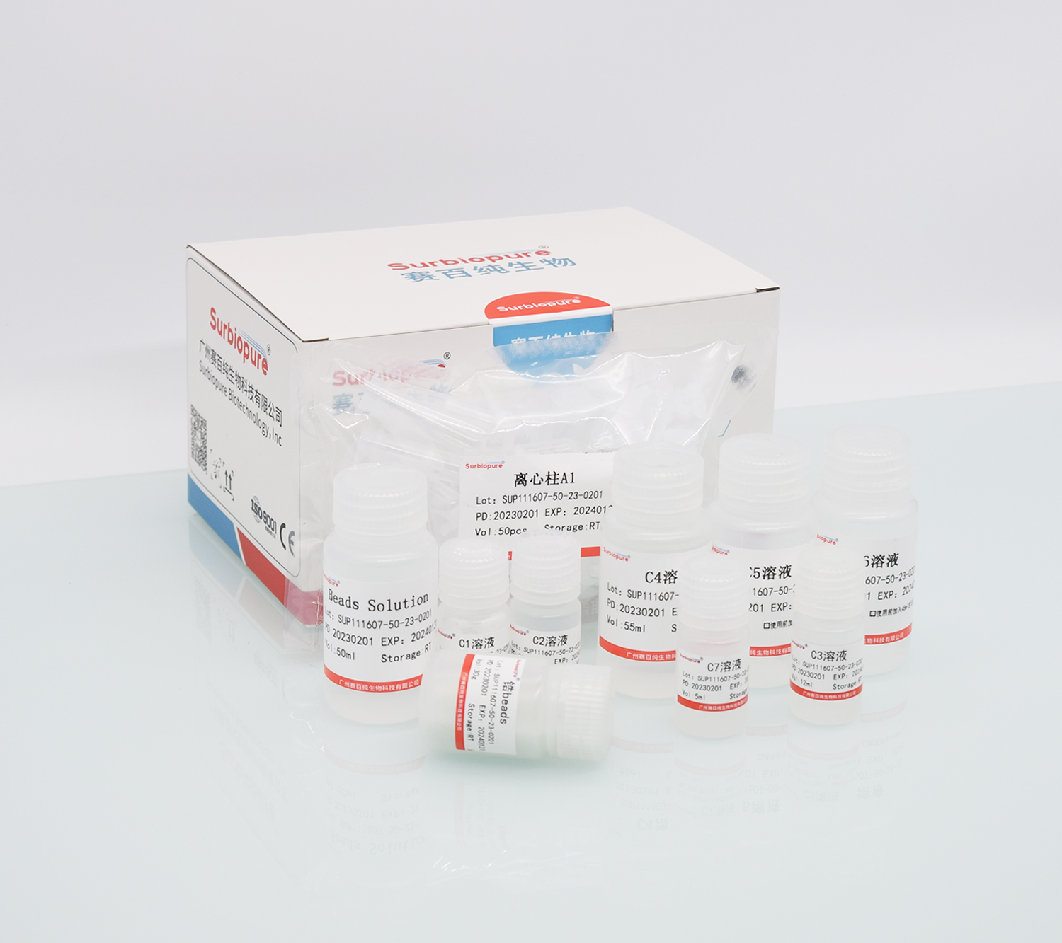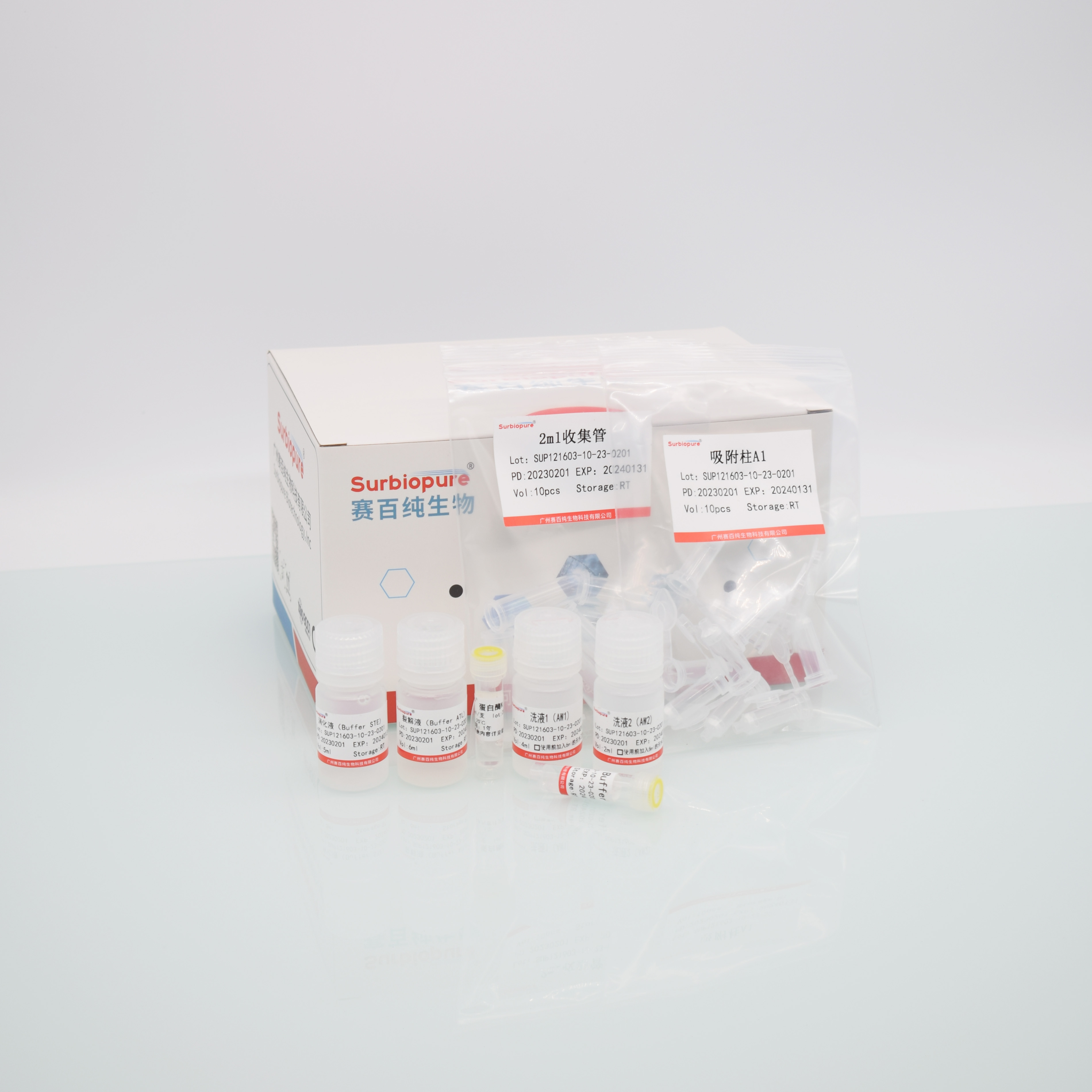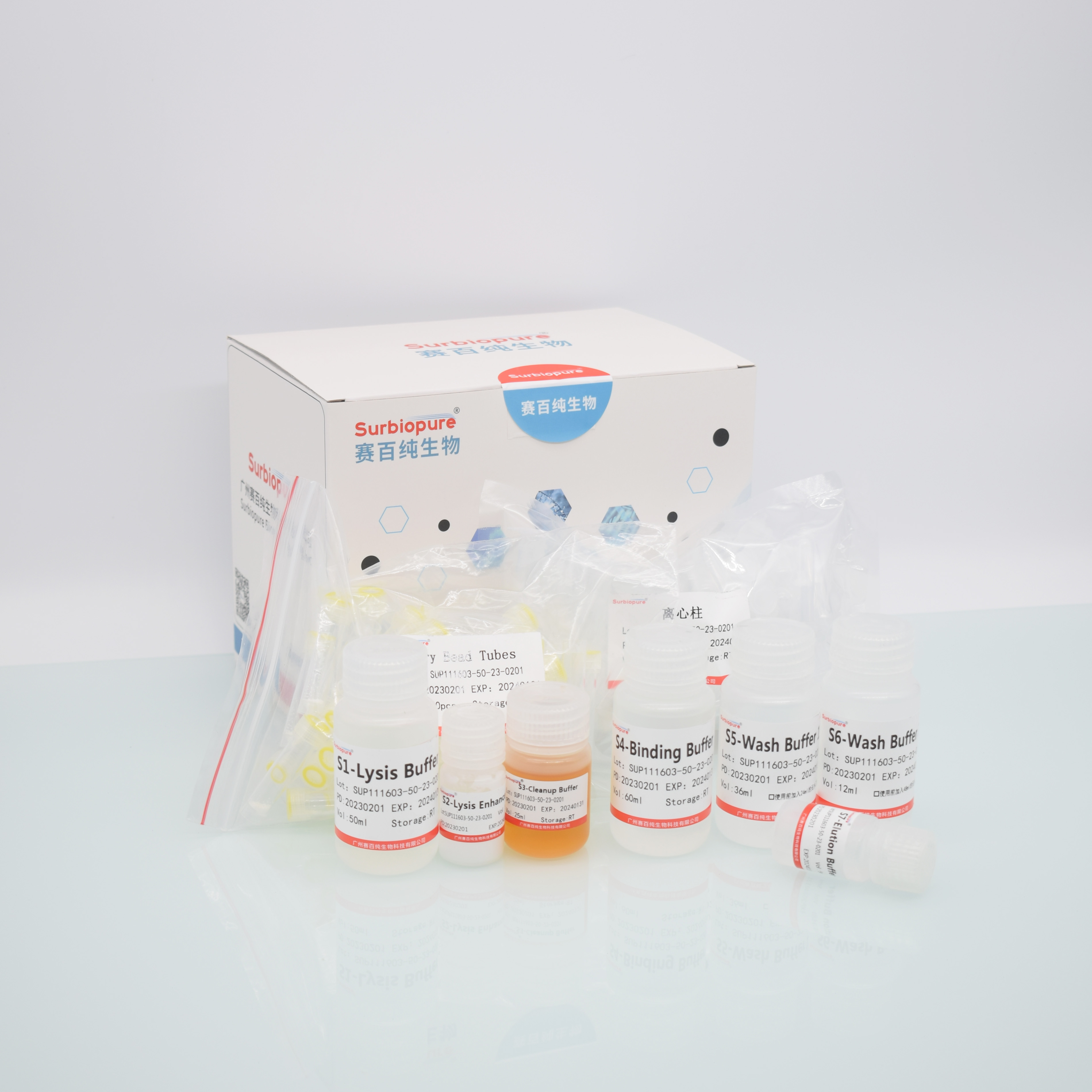 【產品名稱】細菌基因組 DNA 純化試劑盒(離心柱法)。 英文名稱:Surbiopure bacteria DNA Kit。 【包裝規(guī)格】50T/盒 100 T/盒 【適用范圍】各類革蘭氏陰性菌和陽性菌等。 【原 理】細菌樣本經過消化液處理后與裂解結合緩沖液混合,使得細胞破碎并將核酸釋放。離心柱中采用的硅基質材料為本公司特有新型材料,在裂解緩沖液中,能夠高效、專一吸附DNA,可最大限度去除雜質蛋白及細胞中其他有機化合物。提取的基因組DNA片段大,純度高,質量穩(wěn)定,可直接用于DNA下游實驗。041603