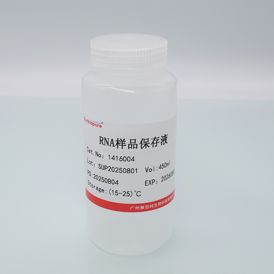 適用于動(dòng)物組織(心,肝,腎,肌肉,睪丸,腦,脾等)、培養(yǎng)細(xì)胞、RNA 病毒、果蠅、細(xì)菌、白細(xì)胞、全血、一些植物組織等。RNAlater 是一種水相的,無(wú)毒的組織保存液體,可以迅速滲入新鮮組織細(xì)胞的胞漿中,在非凍狀態(tài)下原位穩(wěn)定和保護(hù)細(xì)胞內(nèi)的RNA。取下組織薄片后立刻浸入RNAlater保存并不影響將來(lái)提取RNA的質(zhì)量和數(shù)量。RNAlater消除了RNA樣品需要立刻處理或者必須液氮保存的不方便。浸入RNAlater后,新鮮組織細(xì)胞中RNA可以完好的在37?C下保存一天, 在25?C下保存一周, 4?C下保存一個(gè)月, 在-20?C或-80?C下長(zhǎng)期保存。RNA 病毒樣品(如HCV 和HIV)可在37?C保存一個(gè)月。